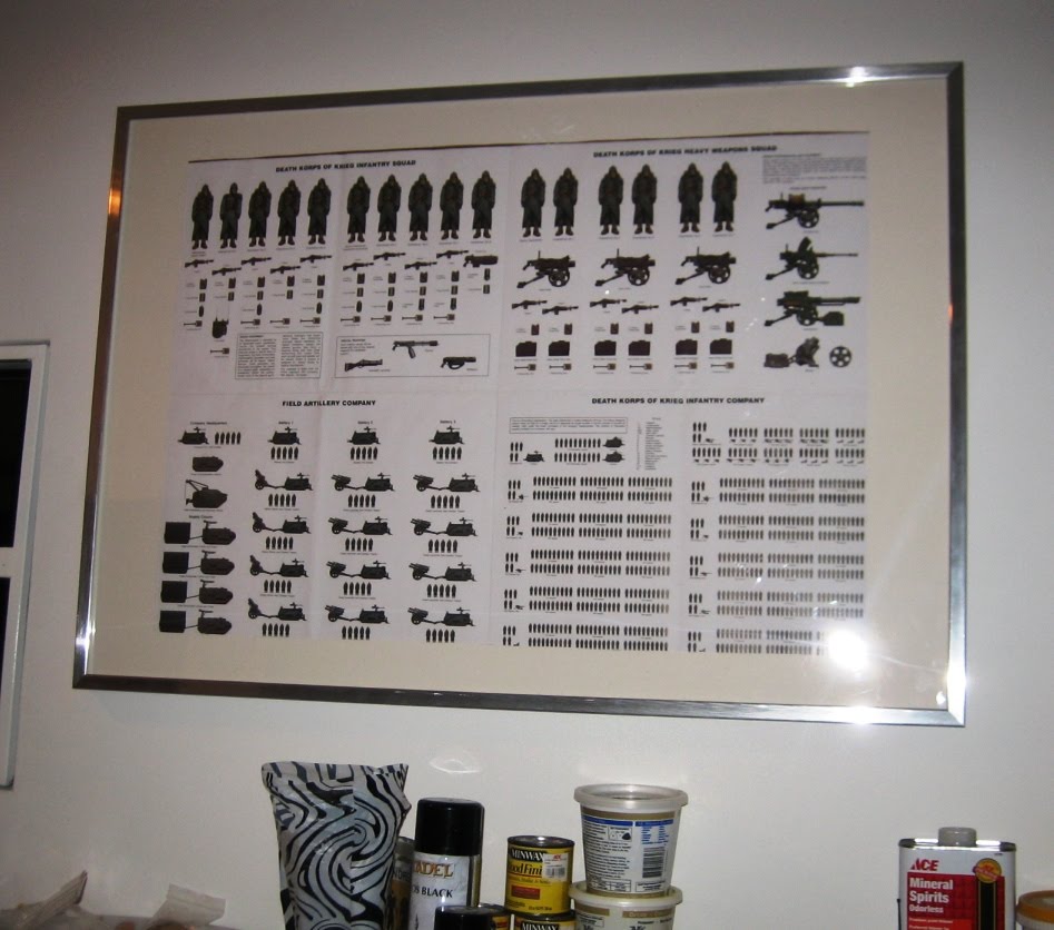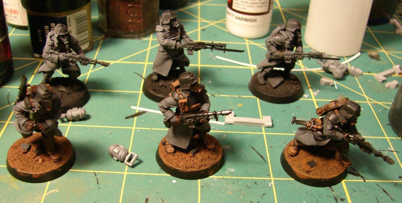 Here's the primary area where I deviated from the "historical" model. I feel like with the strict regimentation of the Death Korps, unit identification would be very important. So, I decided that every guardsman will be clearly identifiable down to squad level.